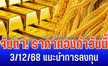 จับตา! ราคาทองคำวันนี้ 3/12/68 แนะนำการลงทุน